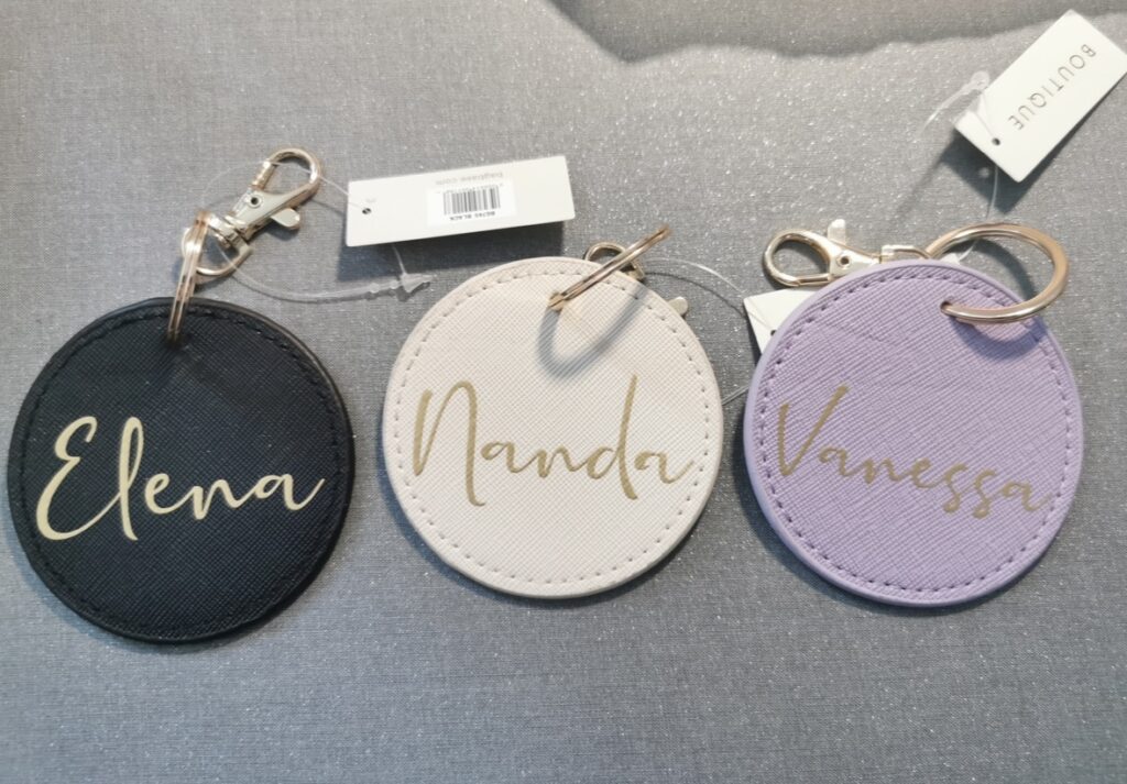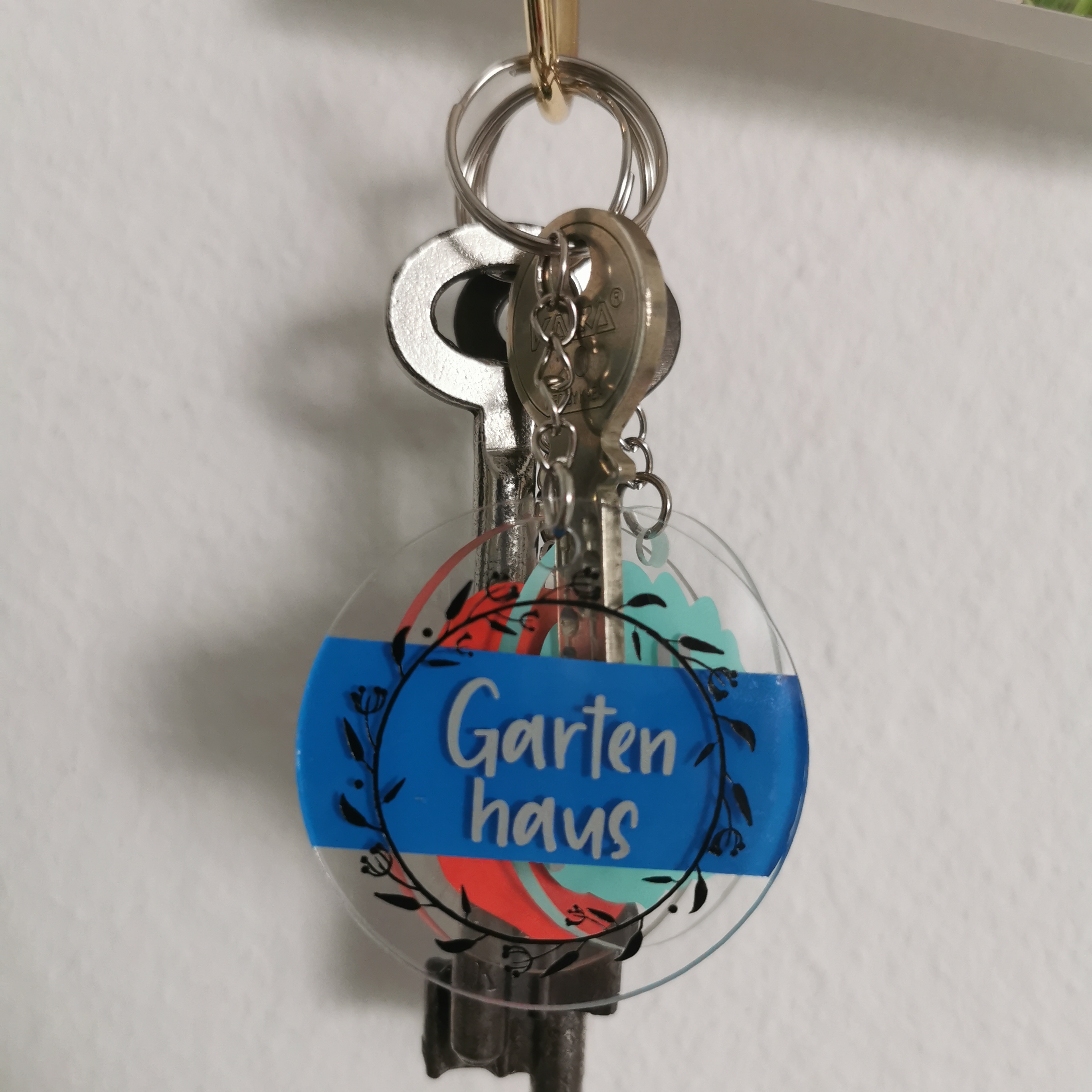 Schlüsselanhänger Personalisiert mit Name oder Verwendungszweck aus verschiedenen Materialien